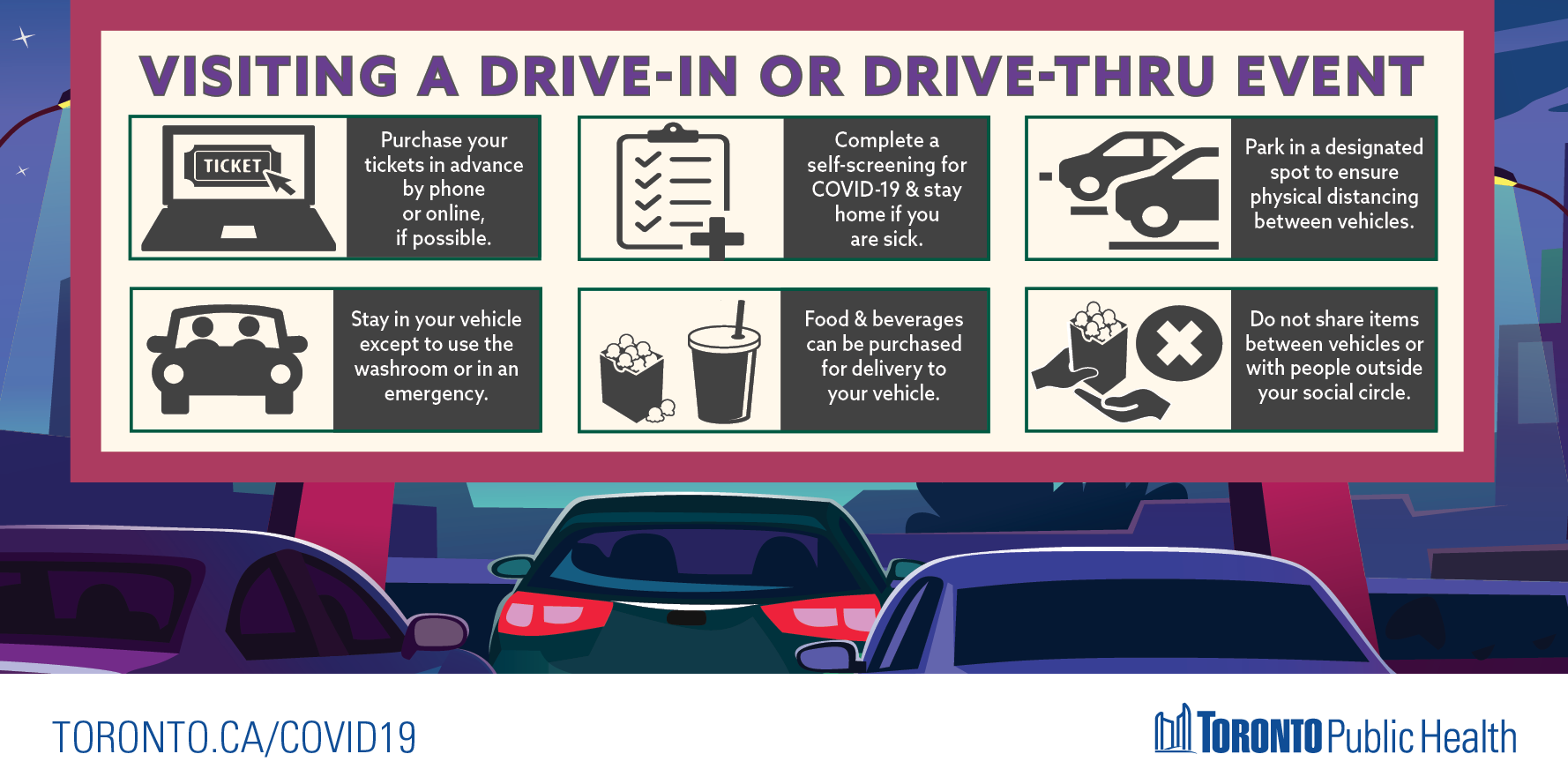 Toronto Public Health On Twitter Drive In Amp Drive Thru Events Such As Theatres Concerts Animal Attractions Amp Art Installations Can Reopen With Public Health Measures In Place See Our Full Guidance Here Https T Co Ni89bo6q5r